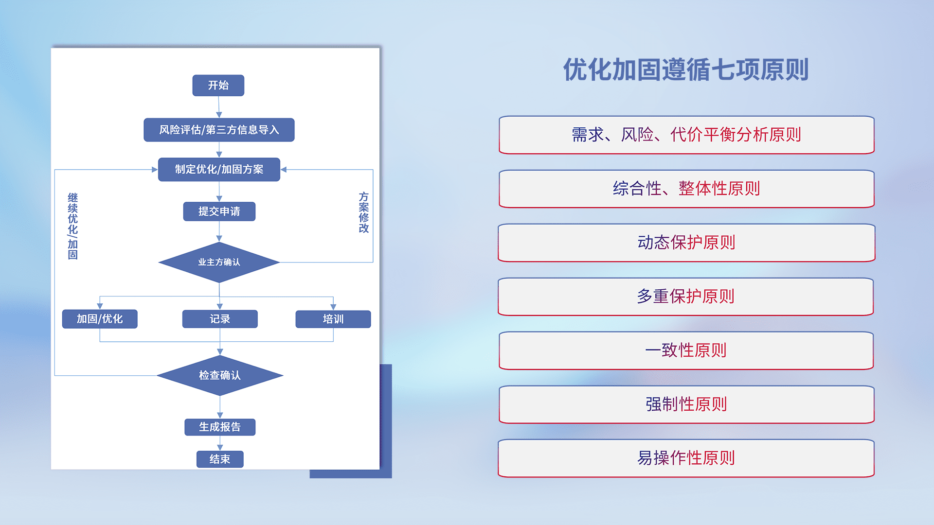 最大程度利用现有资产,,对评估发现的问题进行封堵与整改,,,,防止漏洞被利用,,提升整体网络安全性,,,为客户带来高标准的优化加固服务。。。